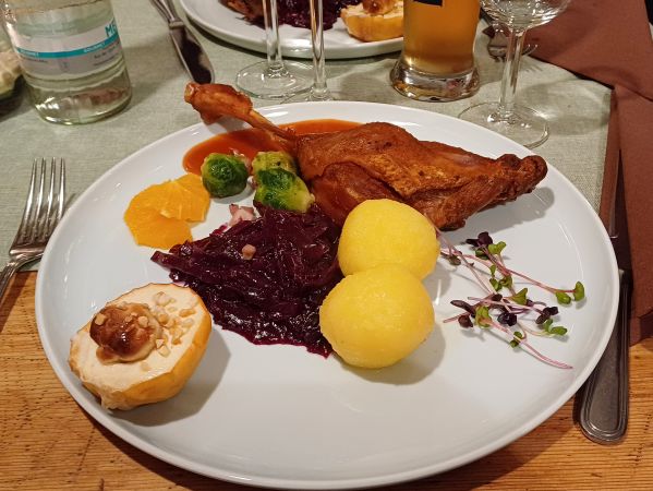 Gänsekeulen mit leckeren Beilagen, Rotkohl, Rosenkohl,