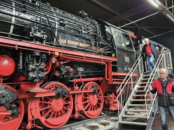 Treppe unbedingt in den Führerstand der 44er Dampflok klettern, um