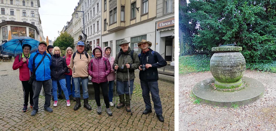 Nach einer Aufwärmpause im Restaurant fuhren wir mit der Straßenbahn zum Hauptbahnhof und flanierten über die Berliner Straße zum Postplatz. Von dort marschierten wir über den Marienplatz zum Stadtpark, vorbei am 15. Meridian, der für die Bestimmung der Mitteleuropäischen Zeit maßgebend ist, weiter über die Brücke zurück nach Zgorzelec, wo uns ein Bus abholte. Trotz zeitweiligen Regens war dies ein gelungener Ausflug.