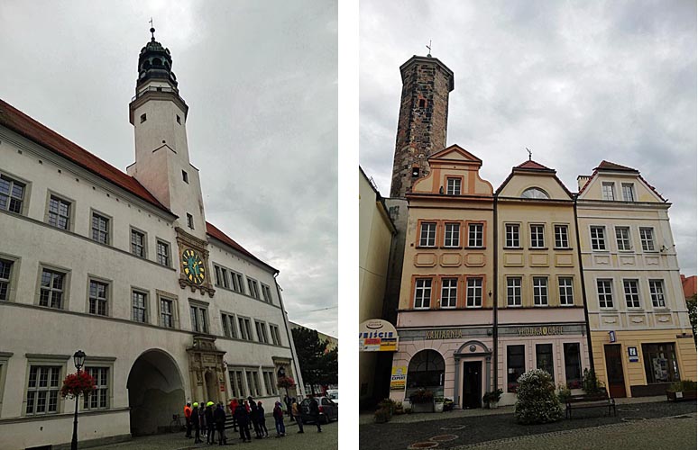 Ein Stadtführer leitete uns nachmittags zu den Sehenswürdigkeiten im Stadtkern von Lubań und gab interessante Informationen in Polnisch und Deutsch kund. Das im 16. Jahrhundert errichtete und im Zweiten Weltkrieg teilweise zerstörte Renaissance-Rathaus wurde nach 1960 rekonstruiert. Die Bürgerhäuser auf dem Marktplatz beherbergen jetzt die Touristeninformation und ein Cafe, das wir als Treffpunkt nutzten.
