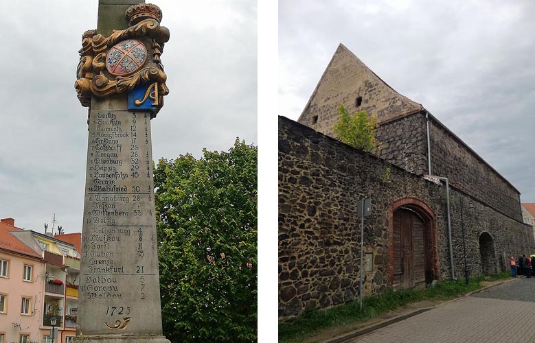 Eine Nachbildung der Postdistanzsäule vom Görlitzer Tor steht um die Ecke. Ebenfalls aus dem 16. Jahrhundert stammt das in die Stadtmauer integrierte Salzhaus, das für die Lagerung von Salz und Getreide diente und später auch als Soldatengefängnis und als Spritzenhaus genutzt wurde. Während die anderen dann zum Kamiennej-Park gingen erkundeten Karola und ich den östlichen Teil der Innenstadt. Später trafen wir uns im Cafe und marschierten von dort zurück zum Supermarktparkplatz, wo der Bus uns abholte.