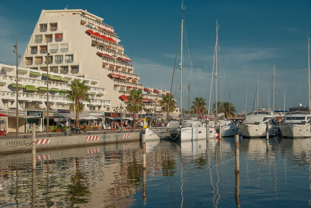 La Grande Motte liegt im Süden Frankreichs direkt am Meer in Okzitanien. Dieser Ort wurde in den 1960er Jahren als Touristenort erschaffen.